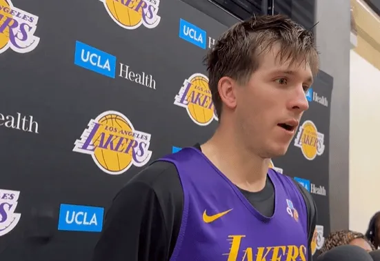 今日湖人隊內訓練接受后,湖人球員奧斯汀-里夫斯接受了記者采訪(fǎng),并談到了詹姆斯。
