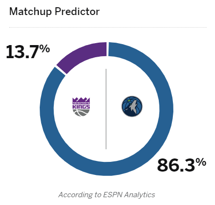 [流言板]ESPN預測明日國王vs森林狼比賽:森林狼勝率高達86.3%