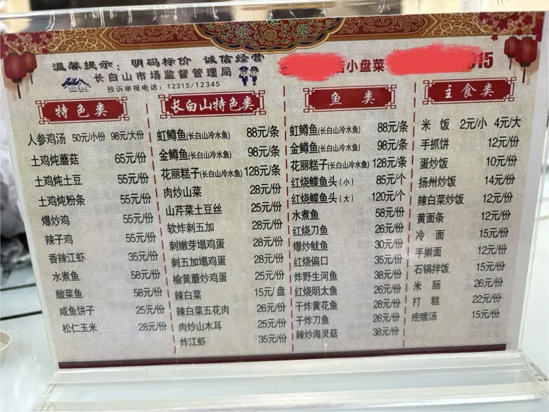 吃飯的吹東很多本地人,看圖4,正宗東北本地人,不是景區里面的飯店,是長(cháng)白山境內安圖縣街上的一家店。不是寫(xiě)了個(gè)長(cháng)白山管理局就是景區內的飯店啊