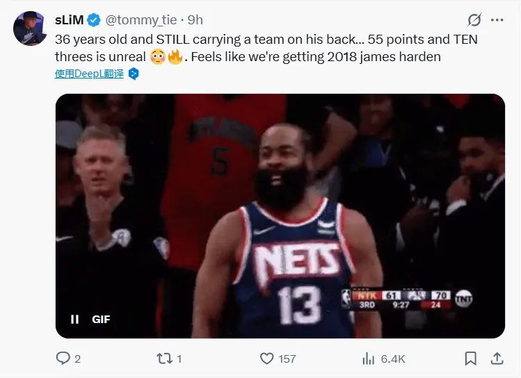 -(157贊)36歲了依然扛著(zhù)整個(gè)球隊前進(jìn)……55分外加10記三分簡(jiǎn)直不可思議。感覺(jué)我們又迎來(lái)了2018年的詹姆斯·哈登。