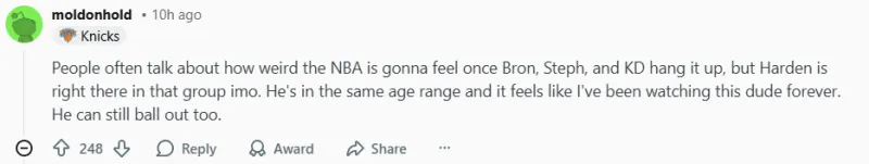 -(248贊)人們常說(shuō),一旦勒布朗、斯蒂芬和科比退役,NBA會(huì )給人多么奇怪的感覺(jué),但在我看來(lái),哈登就屬于那一類(lèi)人。他和他們年齡相仿,但我感覺(jué)我一直在關(guān)注這家伙。他還能打球。
