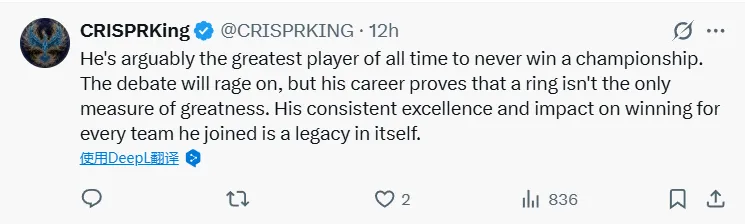 -他堪稱(chēng)史上最偉大的無(wú)冠球員。爭議或許永無(wú)休止,但他的職業(yè)生涯證明:冠軍戒指并非衡量偉大的唯一標準。他始終如一的卓越表現,以及為每支效力球隊帶來(lái)的勝利影響力,本身就是一種不朽的傳奇。