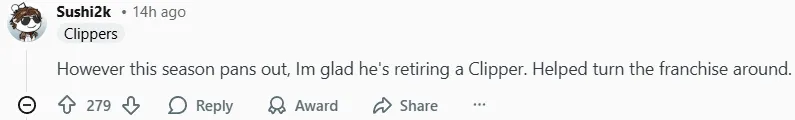 -(279贊)無(wú)論本賽季結果如何,我都很高興他能在快船退役。他幫助快船扭轉了局面。