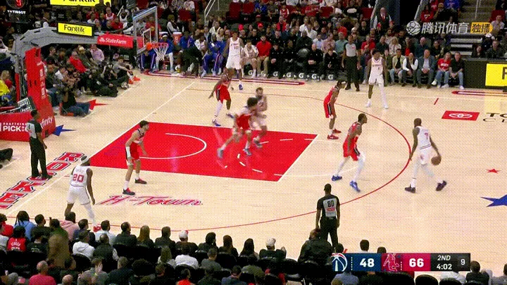 哨響開(kāi)始,首節雙方各有一攻不中,奇才搶到籃板發(fā)起快攻,喬治直接面對申京突破上籃,結果被小賈協(xié)防蓋帽,然后空切扣籃得到首分。大家回想一下獨行俠那一場(chǎng),小賈腳踝受傷缺陣,申京沒(méi)有小賈這個(gè)保鏢在側,開(kāi)場(chǎng)被連續突破兩次。今天火箭開(kāi)場(chǎng)采用的是人盯人防守,搞笑的是,申京對位那個(gè)男人——米德?tīng)栴D,雖然米神,不復當年之勇,但烏度卡也太不尊敬老同志了吧。開(kāi)個(gè)玩笑,這是烏度卡采用的一貫防守策略,把申京置于底角便于協(xié)防、補防,以前我就好奇底角的輪轉,今天恰恰看到原來(lái)是小賈這個(gè)無(wú)名英雄從45°幫他補位。還有再看66-48這一球,杜蘭特拉開(kāi)單打,大家仔細看圖1,小賈指揮阿門(mén)換位,將阿門(mén)換到底角,自己站在側翼為杜蘭特拉開(kāi)空間。