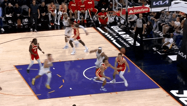 虎撲11月17日訊 NBA常規賽,太陽(yáng)主場(chǎng)迎戰老鷹的搶斷球古比賽正在進(jìn)行中。
